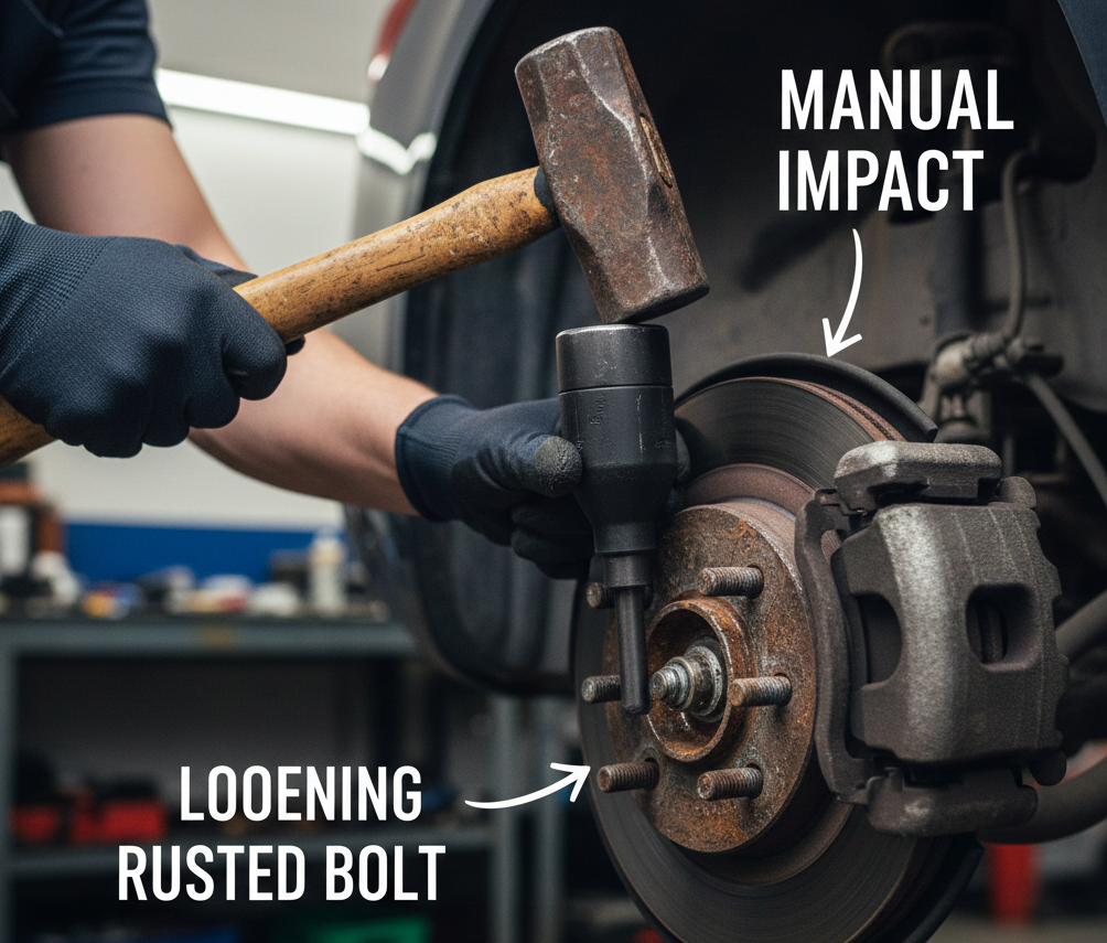 Ang unique benefit of the manual wrench is that the hammer blow forces the bit into ang ulo ng fastener sa eksaktong parehong sandali na inilalapat nito ang pag-ikot. Ang "pababang presyon" na ito ay ang pinakamahusay na paraan upang maiwasan ang pagtanggal ng mga ulo ng Phillips o Torx na nasamsam ng kalawang.